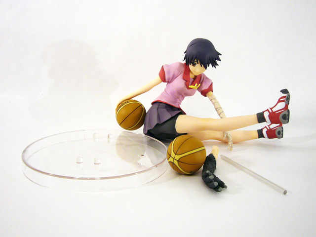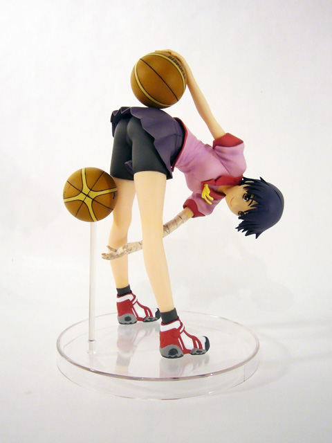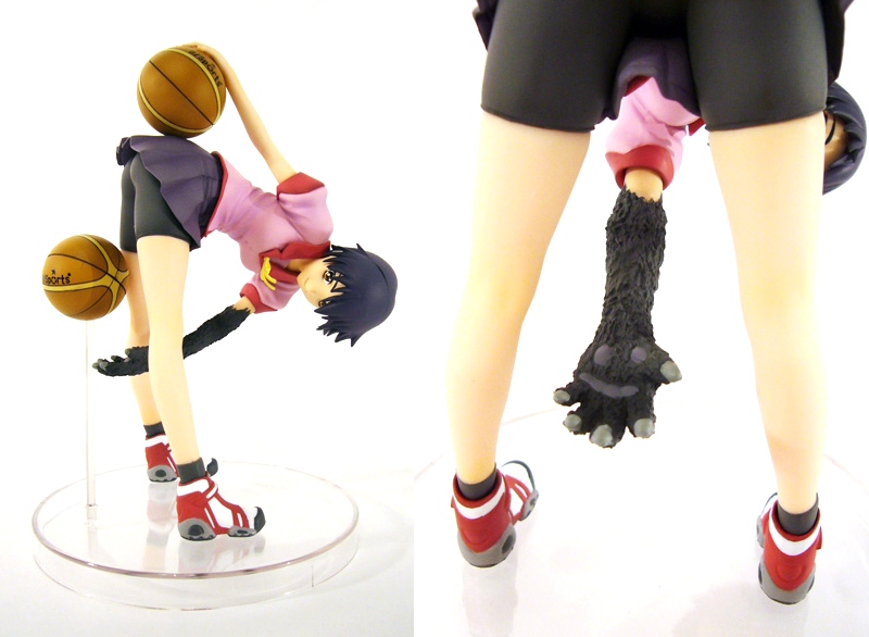 Kanbaru is a not your usual girly and buxom anime girl. Athletic and into sports, Mr. Suruga was a track star who tried to use a mystical monkey’s paw to increase her speed. The plan backfired when the paw was revealed to be a demon in disguise, and it subsequently grafted itself to her body. Living with the constant reminder of her folly, Kanbaru is a somewhat tortured soul. A self-professed lesbian and pervert, the girl moved on to basketball, and that’s exactly what she’s playing in this iconic representation! At approximately 6 inches tall (1/8th scale), Kanbaru shows off her mad skills in a complicated move involving twin basketballs.