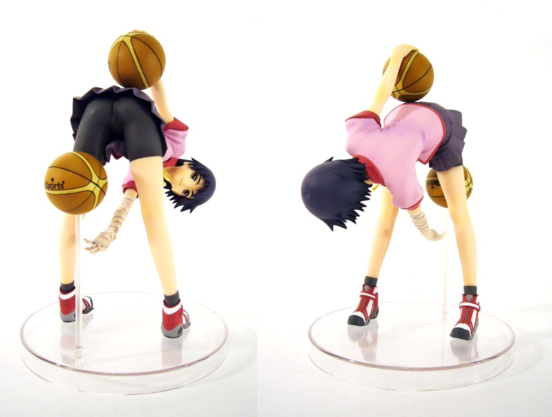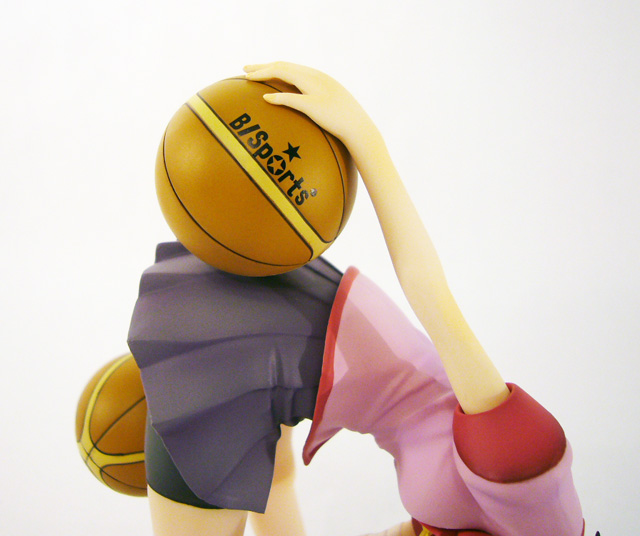 You’ll find Kanbaru comes in just a few parts, and she’s easy to assemble. Plug the posts on the display base into her feet and you’re ready to go! Of course, you can go further by adding the second basketball (on its own dedicated post) to complete the scene. Kanbaru bends over at the waist with her legs straight, tossing a ball between her legs and holding another over her back. It’s definitely an athletic stance, made all the more impressive by her slim physique.