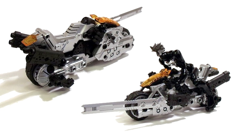 First a small warning: Building your own unique Assemble Borg creation doesn't come easy (or cheap). In fact, it requires that you purchase at least two Assemble Borg figures and it is highly recommended that you snag the Barrels Speeder vehicle to unlock Assemble Borg's full customizing potential. Getting just one Assemble Borg figure gives you a wide range of options for equipping your figure, but the real fun of the line is in mixing and matching the parts. For example, I fully kitted Baron up with both his hand blasters and with Mr. Assemble's boots, while Mr. Assemble gets medieval on the evil Jarknoids with the massive sword blade packed with the Barrel's Speeder. But those are just simple swaps. My coolest creation is the Combo Borg "Death Machine" - an intimidating robotic mobile weapons platform. Mostly comprised of Barrel Speeder parts, the Zoid-like machine springs to killing life with weapons from Baron and Cyber. As I said, the Barrels Speeder is a key source for components, plus it looks awesome on it's own (or rather with Mr. Assemble behind the wheel).