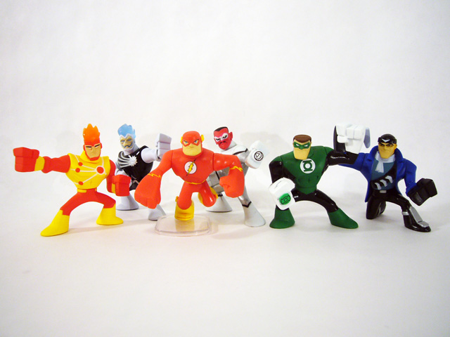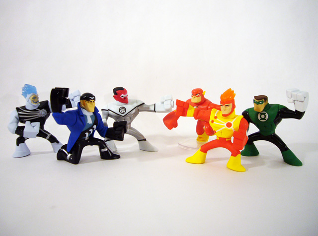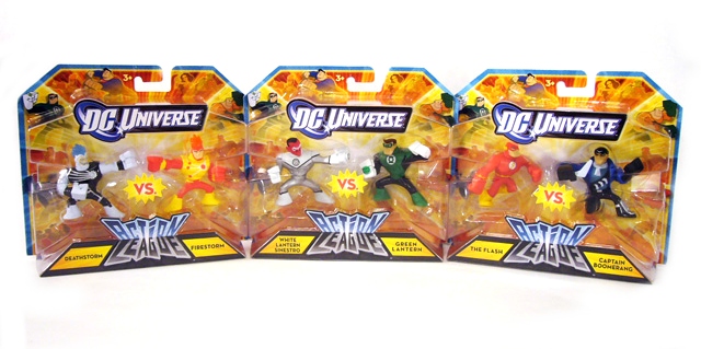 The Action League is off to a great start with iconic and popular characters. With more 2-packs and playsets on the way DC fans both young and old should be able to collect their favorites. It’ll be interesting to see if these figures (or at least parts of them) are reused to make other characters. Flash could pretty easily become Wally West, and a repainted Sinestro Corps Sinestro would be awesome! The Leaguers look great next to Super Hero Squad figures and other “cute” minis. Look for them on the pegs at your local big box toy store now.