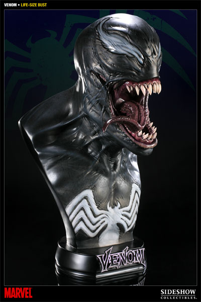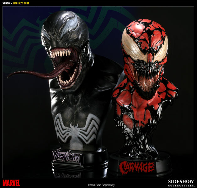 Sideshow shows off their latest 1:1 scale Marvel bust: VENOM. The ultimate companion piece to Sideshow's previously released Carnage bust, the Venom Life-Size Bust will be available for pre-order through the Sideshow Newsletter on Thursday, February 10th, which is typically published between 2PM and 3PM (Pacific Time).