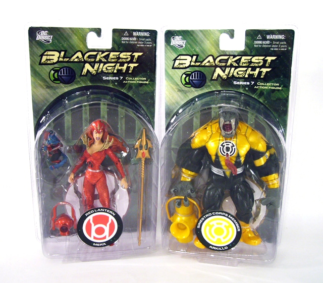 Another month, another series of Blackest Night figures from DC Direct! Last time I took a look at the Green Lantern himself, Hal Jordan from Series 6 (see my review HERE). Out in stores now is Series 7 (as well as 8), bringing yet more of the rainbow-colored warriors from the DC main event to life. This time around we’ve got additional corps members in Black, Red, and Yellow. In addition to Black Lantern Superman and Black Lantern Terra with Scar come two highly anticipated figures: the yellow counterpart to Kilowog Arkillo and the temporary emissary of rage Mera!