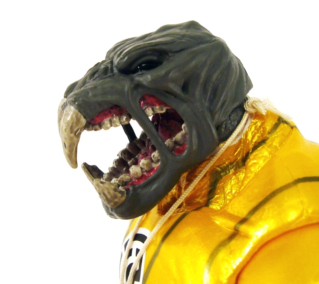 DC Direct’s figures always feature stunning sculpts, and these two are no exception. Arkillo wears a standard Sinestro Corps uniform, which essentially consists of an energy-created bodysuit. But while there may not be a lot of clothing elements to the sculpt, there are tons of muscles! Arkillo is 7 ½ inches of rippling muscle and sinew, with some re-used elements from the Green Lantern series Kilowog figure. In fact, the detail especially on his upper legs, chest, and neck really make it look like the uniform is just “painted on,” exactly as it should. Arkillo’s hands are detailed with tendons, knuckles, and claws, while his head has a really tremendous sculpt. Everything is there from his little beady eyes to the fleshy skin, tusks, individual teeth, and disturbing connectors between his upper and lower jaws.
