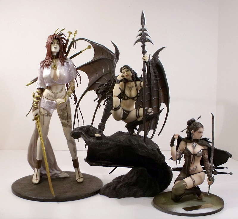 But back to the topic at hand - the PVC version of Luis Royo's Black Tinkerbell. Priced at $119.99, this wonderfully piece - as stated above - perfectly illustrates Fantasy Figure Gallery's true intent: amazing value for an amazingly detailed collectible. Measuring 11.25" tall from the bottom of the rusty steel girder base to tip of her leathery bat-like wings, Black Tinkerbell is alot of fantastic babe for your buck.