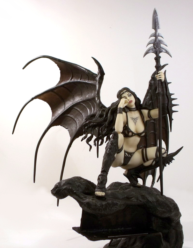 It's all about the wings, a first for the series and something I hope we get more of in the form of flirting pixies, she-dragons and sexy succubi. Collector's have to place these appendages on the statue, a process as easy as plugging them into her back. Another assembly step is arming the dark fairy with her lethal spear. An incredible design, the barbed lance slides into her right hand and rests snug in a hole on the base.