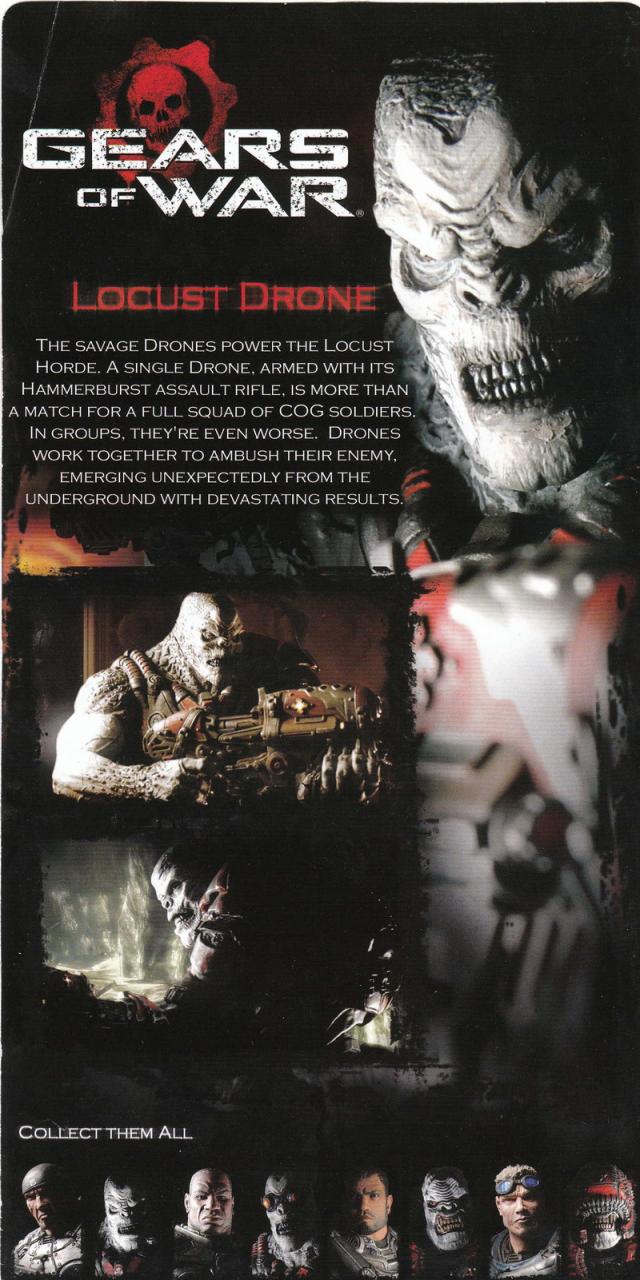 With excitement building up for the release of Gears of War 3, I thought it'd be fun to take a look back at the series of action figures that started it all. Released back in May 2008, NECA's Gears of War Series 1 introduced fans to a balanced mix of core COG characters and a sampling of the evil Locust Horde. As amazingly detailed as these were, articulation was at first a tad awkward. This quickly changed in following assortments equaling a figure line that moved as good as they looked. With the release of Gears of War 3 figures this fall, NECA will continue to improve the line with not only increased articulation - the most seen in one of their toy lines - but with joints better concealed with the figure sculpt.