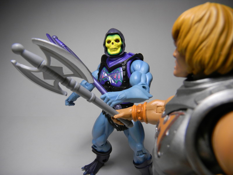 Battle Armor Skeletor does not include a havoc staff or sword but he makes up for it with a cool purple battle axe just like He-Man. The joints are nice and tight on this particular figure and the paint apps on these figures continue to impress with other month’s release.