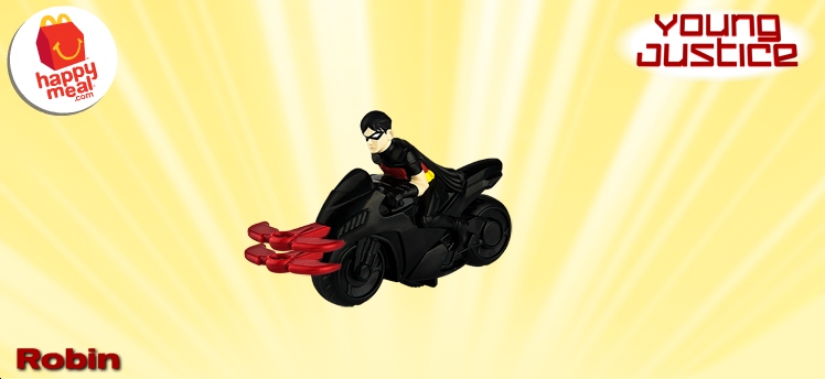 Participating McDonalds are now offering Happy Meal toys pulled from the Cartoon Network's new Young Justice animated series. There are eight premium figures to collect. These include: