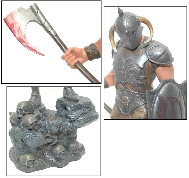Thanks to artist William Paquet, Death Dealer comes to life in this gorgeously designed statue. Standing atop a barren rockscape littered with skulls, the Death Dealer wields his massive iron and wood axe, eyes glowing red with visions of blood and slaughter.