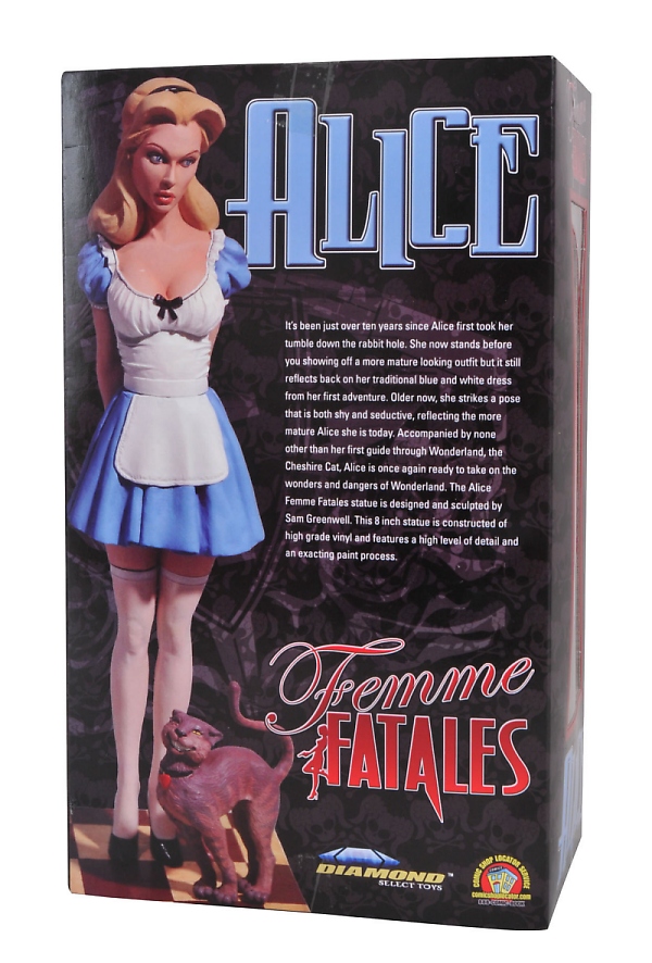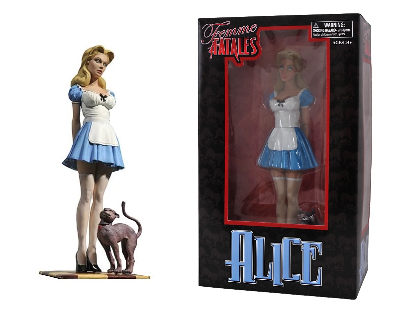 Standing 9" tall, this Sam Greenwell sculpt showcases the Lewis Carroll heroine in a whole new light. Femme Fatales Alice, together with her feline friend the Cheshire Cat, is slated to arrive in May priced at a SRP of $39.99.