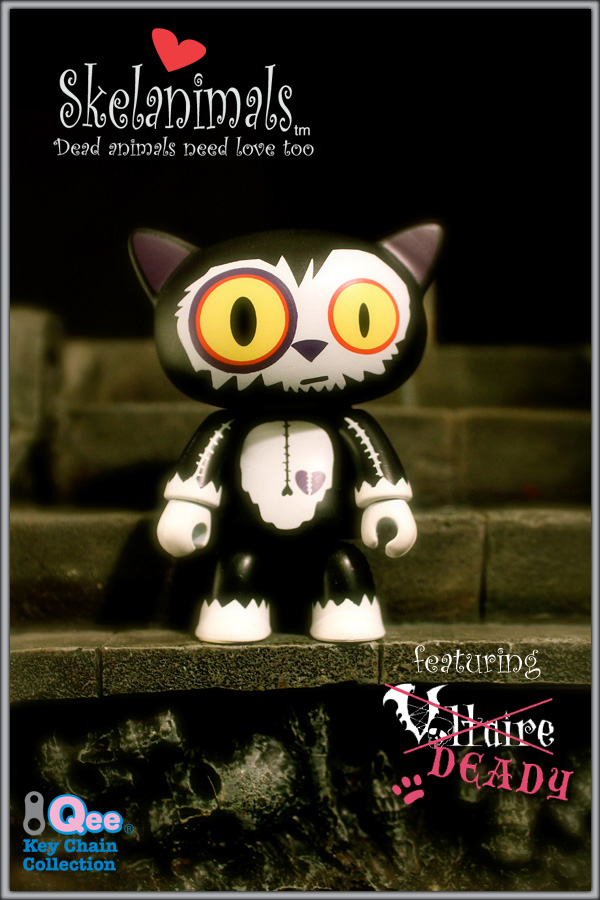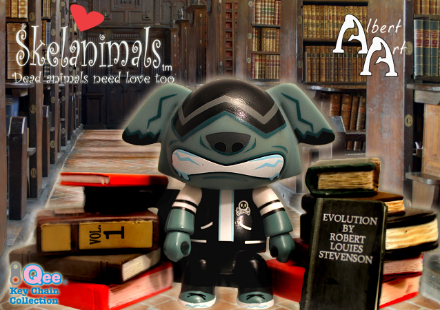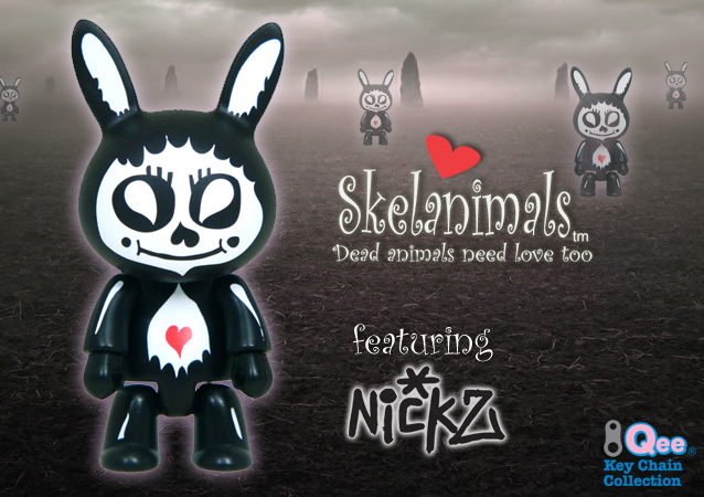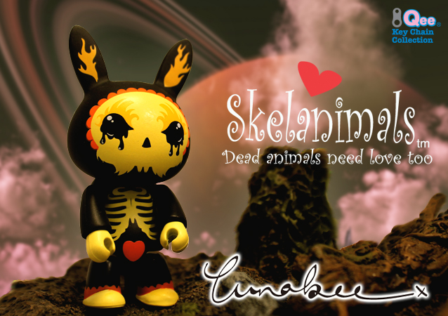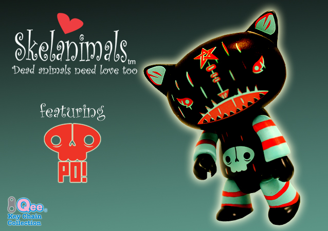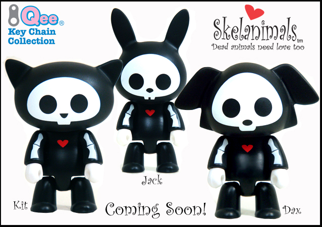 Toy2R fully reveals their next series of artist 2.5" Skelanimal Qees. Featuring designs by Voltaire, Lunabee, Pocket Wookie, Albert Art, Nick Z, and PO! (Patricio Oliver) and also including classic editions of the Skelanimal characters DAX, Jack and Kit. Each Skelanimal Qee will include a Qee keychain attachment.
