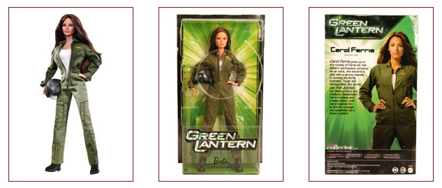 Landing in special action figure-inspired packaging, it’s Barbie as Carol Ferris, lifelong friend and childhood sweetheart of Green Lantern hero Hal Jordan. Dressed in her green flight suit with a working zipper, she comes with her pilot helmet that features the Sapphire logo and Star Sapphire icon. Painted to the likeness of the actress who portrays Carol in the upcoming film, she also features an articulated body.