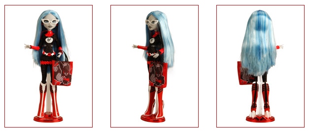 Being that Ghoulia Yelps is the smartest ghoul in school, naturally she’s a comic book fan. Ghoulia’s on her way to NekroCon dressed as her favorite zombie super hero, Dead Fast. Ghoulia comes with a miniature Dead Fast action figure and a Dead Fast fan fic book that she wrote and illustrated herself.