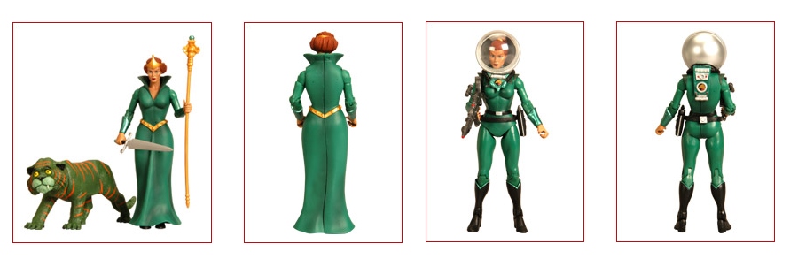 The good queen of Eternia is finally here to complete the Eternos Royal Family. Marlena isn't coming empty handed... she includes her royal green dress, scepter and sword, plus an interchangeable space helmet head, rifle and blaster pistol to transform her back into her fighting days as Captain Glenn, Heroic Galactic Adventurer. And as an added accessory, Queen Marlena includes Cringer, Prince Adam's loyal pet and secret identity of Battle Cat. Marlena is packed as Queen Marlena Heroic Queen of Eternia for SDCC then as Captain Glenn Heroic Galactic Adventurer for