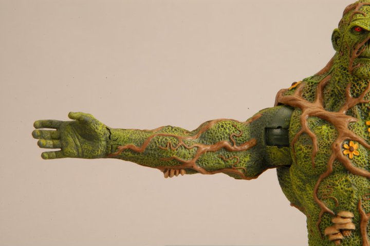 Mattel has posted new photos providing a better look at the new "endoskeleton" articulation on their San Diego Comic-Con Exclusive Swamp Thing action figure. As the images demonstrate, Swamp Thing is covered in a soft pliable material that allows him to freely move without unsightly articulation joints (for the most part).