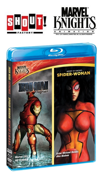 Two Marvel Knights Animation Super Hero adventures are debuting on Blu-ray for the first time. IRON MAN: Extremis and SPIDER-WOMAN: Agent of S.W.O.R.D. are presented together with high-def 1080p picture quality and advanced digital sound in this special edition set from Shout! Factory.