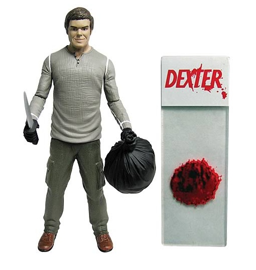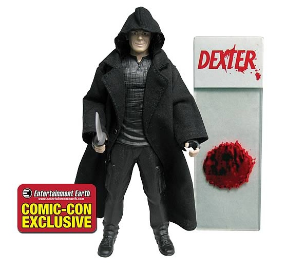 BifBangPow! announces that they are taking their previous 7-inch Dexter action figures and shrinking them down to a more compact 3 3/4" scale. Two versions will be available. First will be a Comic-Con Exclusive Dexter as the Dark Defender (pictured above, limited edition 3000, $14.99), followed by a main line Dexter Morgan version (below, $9.99). Each figure features 10 points of articulation, in-scale accessories and a collectible blood-slide.