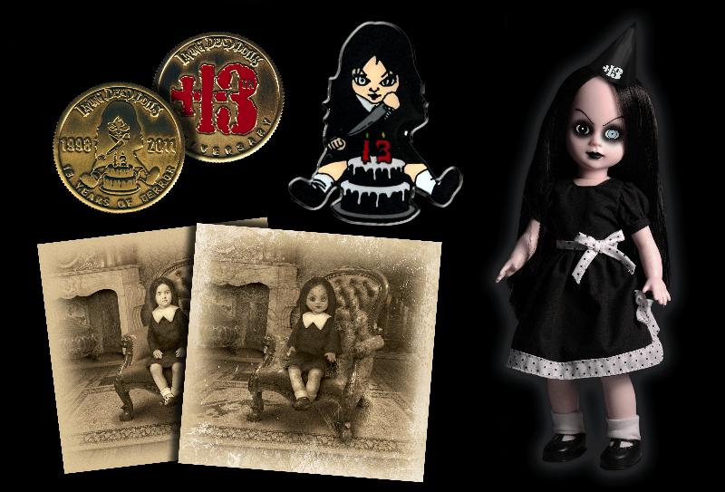 The Prizes: The winner will receive an Anniversary Prize Package that includes a limited edition anniversary coin, a limited edition anniversary die cast pin, a limited edition Living Dead Dolls lenticular photo, and an exclusive Celebrating Sadie 10' doll.