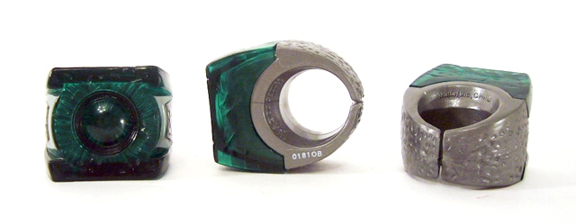 Finally, every single figure in this line comes with a Green Lantern ring that you can wear! Well, those of you who have very slender fingers, that is. When I heard that rings would come with all figures I figured they would be pretty junky, just like the old ones that came with some DC Direct toys. Instead, these are big and beefy, with lots of detail and cool translucent green plastic over a solid gray core. The “face” of the ring is even bigger than that on the half die-cast one that came with the Early Bird figure! Unfortunately for us adult collectors, these plastic rings have a shockingly tiny opening for your finger. Just plan on spreading the joy and giving yours to budding young Green Lantern fans.