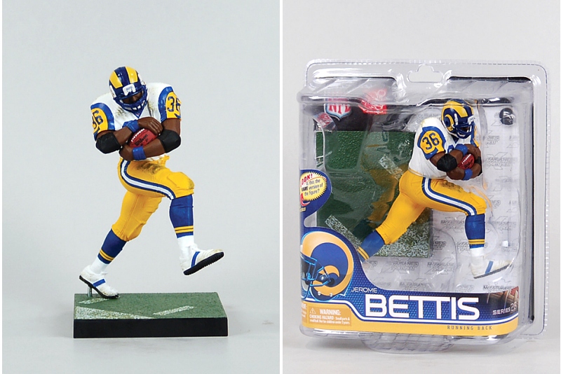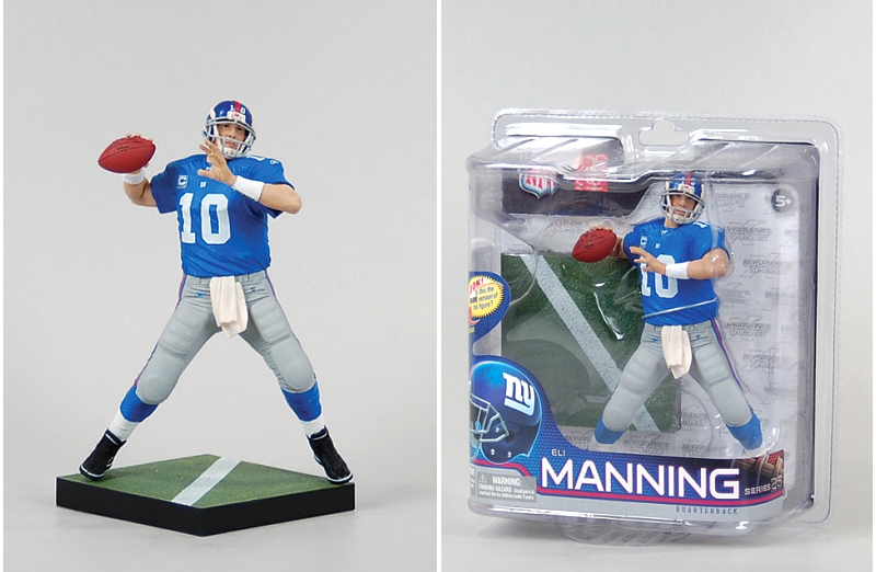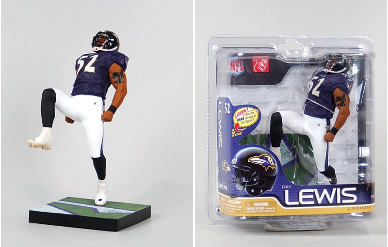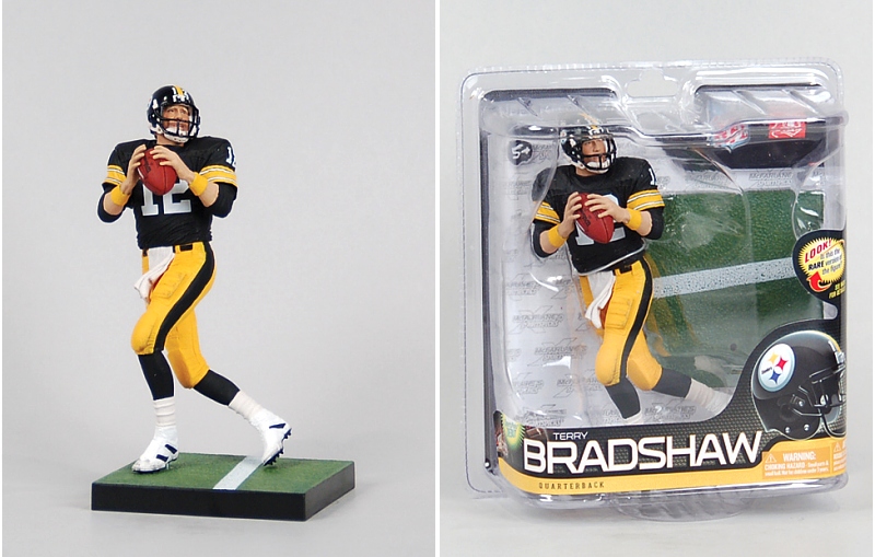NFL 26 features the SportsPicks debut of Hall of Fame Steelers quarterback Terry Bradshaw. Bradshaw is joined by fellow Hall-of-Famer Jerome Bettis – available as a St. Louis Ram. New England's Wes Welker and Miami's Brandon Marshall make their SportsPicks debuts as well, alongside a new pose for Giants quarterback Eli Manning. Baltimore's Ray Lewis celebrates yet another defensive highlight, while McFarlane's 12-inch Adrian Peterson pose is available at the six-inch scale for the first time.