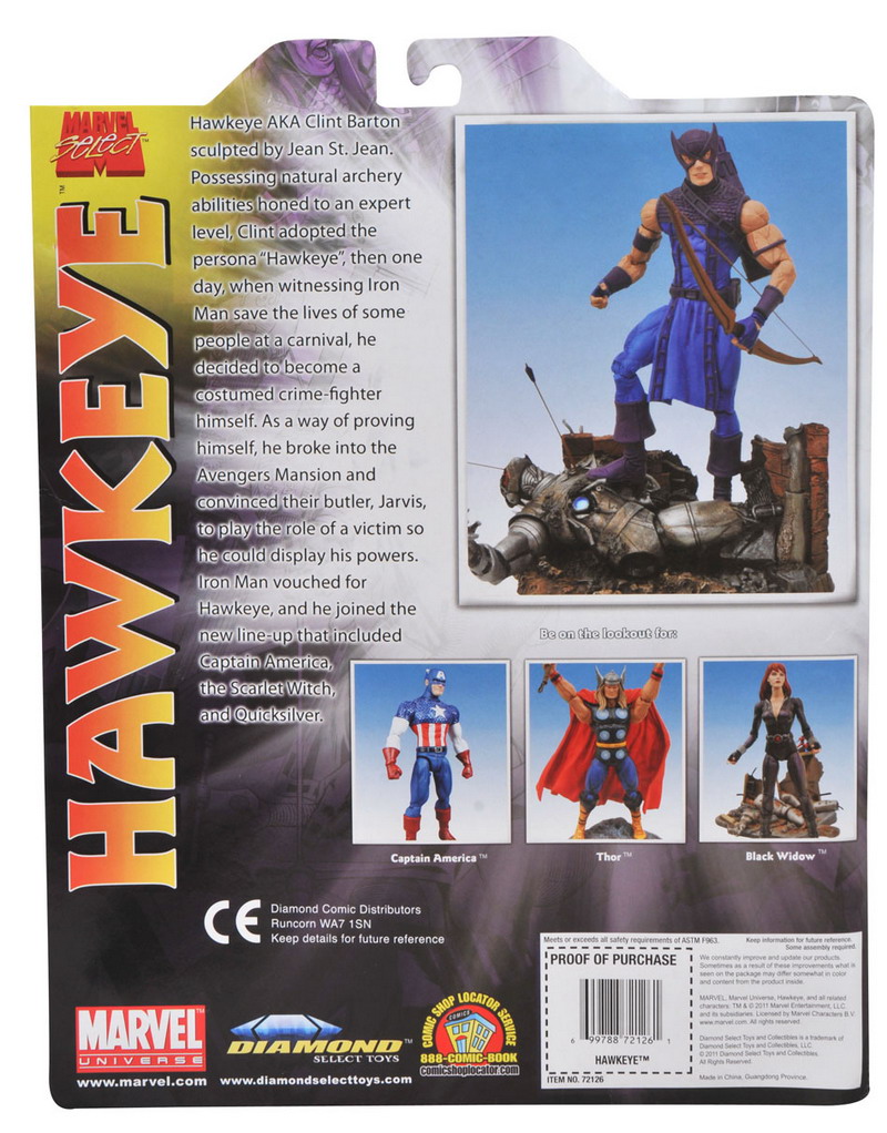Diamond Select Toys announces that they will soon be offering a new line of Disney Store-exclusive Marvel Select figures. These will be classic superhero interpretations, leading off with Hawkeye and Thor in August, followed by Captain America and Black Widow in September.