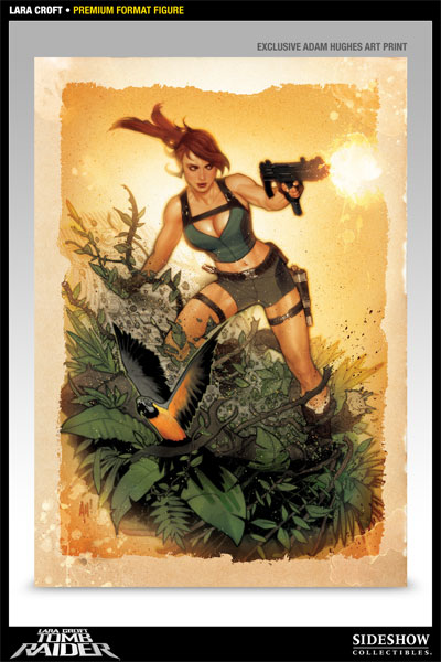 The Exclusive Lara Croft Premium Format Figure, which will include a Fine Art Print by Adam Hughes, will be priced at $349.99, and have an Edition Size of 750 pieces worldwide. Additionally, a regular version, without the print will be available for Pre-Order and priced at $349.99. Both versions will be sold on a first come, first served basis, and will have the FLEXPay option available as a payment choice.