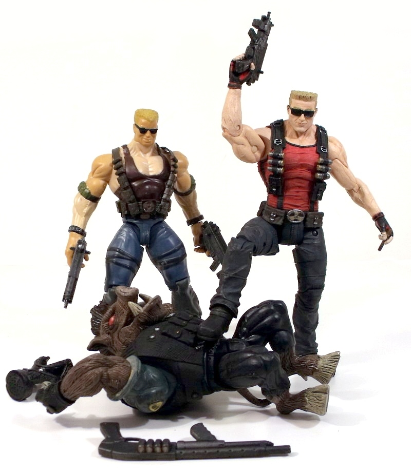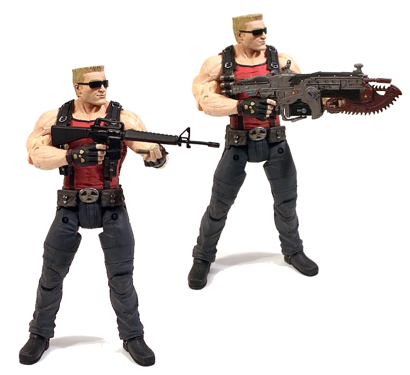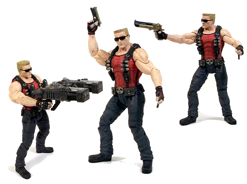 NOTE: In my eagerness to own the perfect Duke Nukem, some small, minor custom paint applications were applied prior to photography. These include the addition of gold on the tips of Duke's bandolier bullets, belt buckle and the back of his gloves. The rest is all NECA - job well done!