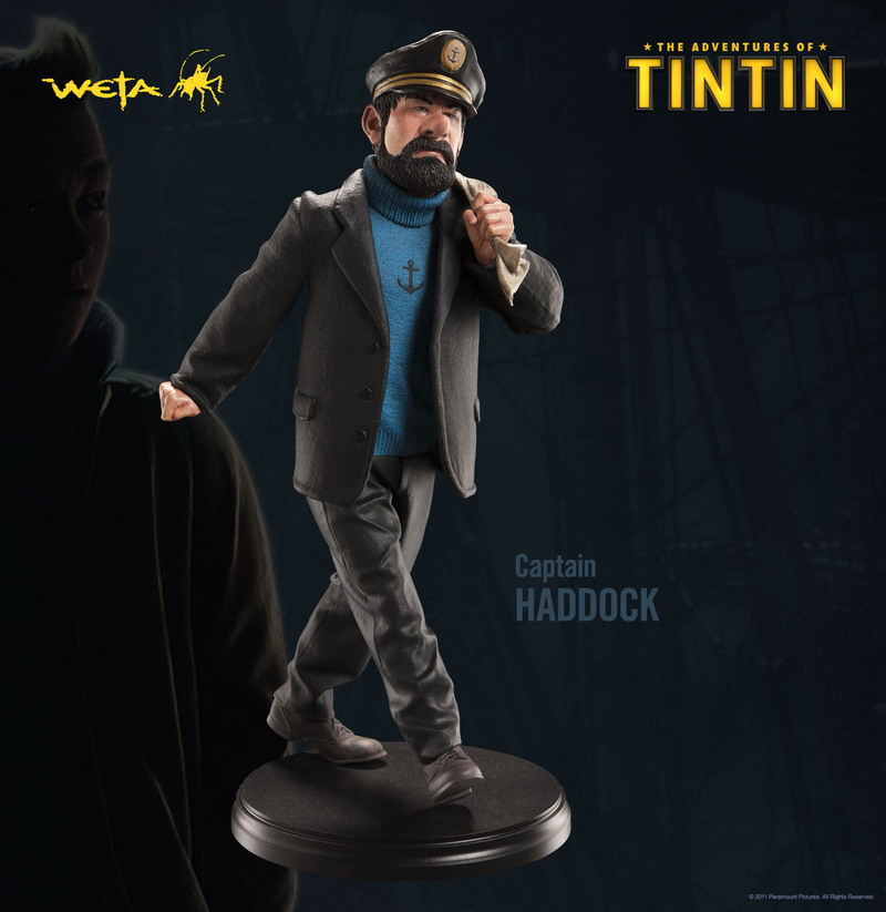 Weta announces that they will be releasing a new range of collectibles for Paramount Pictures' motion capture animated film, The Adventures of Tintin. A 1:6 scale statue of Captain Haddock is the first product to be launched in this line, with pre-orders currently being accepted at wetanz.com. Standing 11.8" tall and weighing in at 2.2lbs, the sculpture is scheduled to ship 4th quarter 2011 priced at $199. No more than 2,000 are being produced.