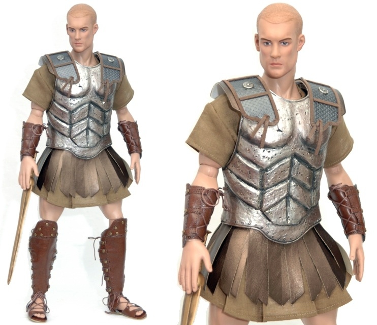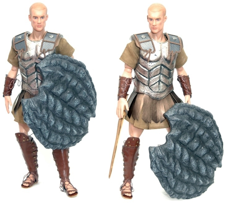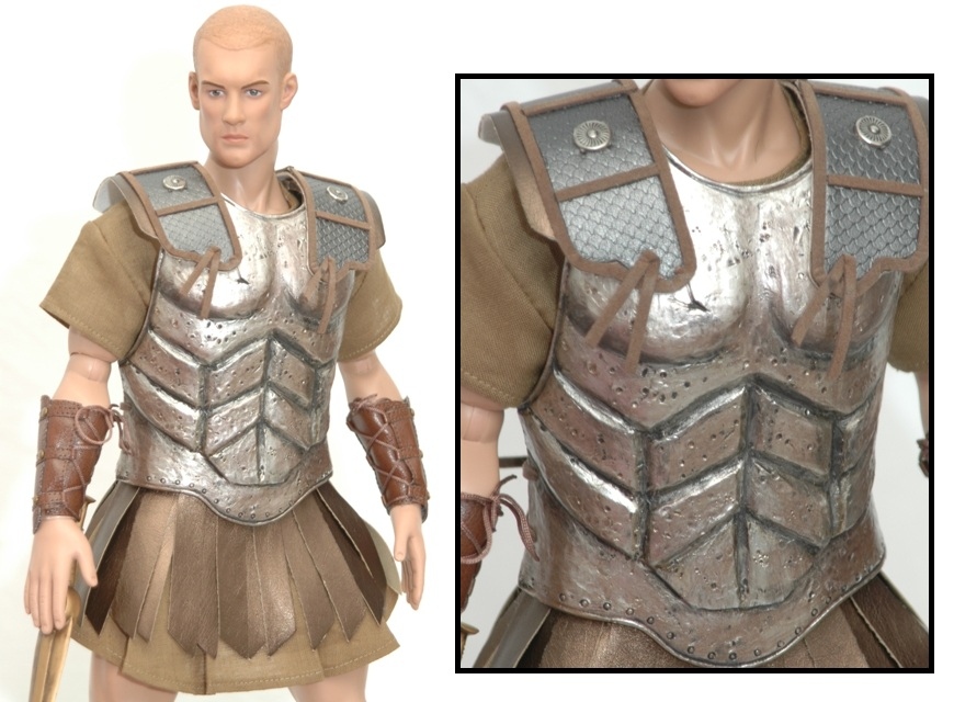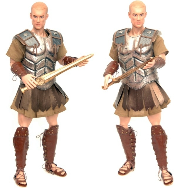 As previously mentioned, the outfit is the true standout of this figure. A linen-like tunic of greenish brown is worn under the warrior's armor, which is, as previously said, impressive in its film-accurate sculpting. Likewise, the faux leather detailing, bracers, studded leg guards and lace-up sandals all compliment one another and complete the outfit (above, below).
