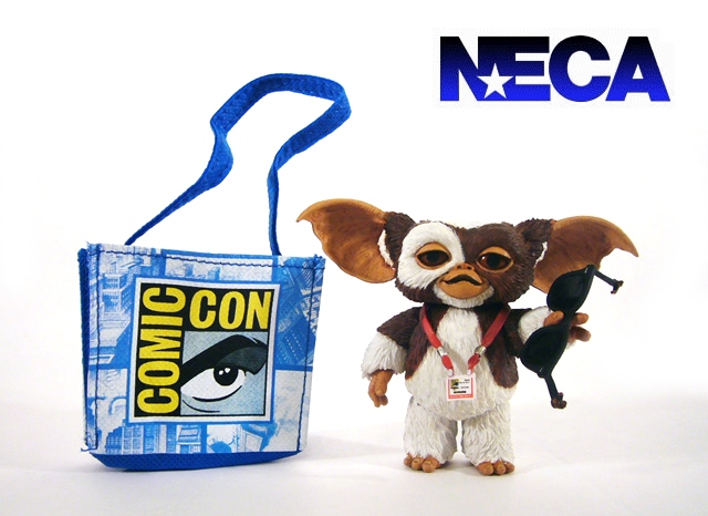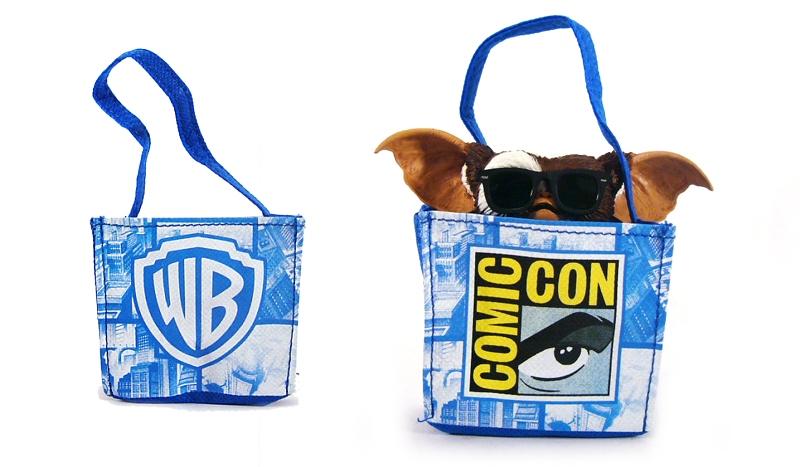 Finally, NECA celebrates the ubiquitous Warner Bros. Comic-Con bags with Gizmo’s exclusive tote. Just larger than him, the blue bag has the SDCC logo on one side and the WB icon on the other.
