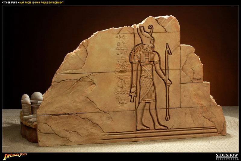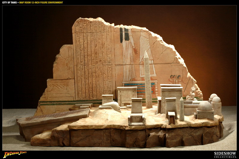 Seen in "Raiders of the Lost Ark," the City of Tanis - Map Room measures 17.00" H x 17.00" W x 27.00" L, large enough to accommodate your Indy figure with Staff of Ra.