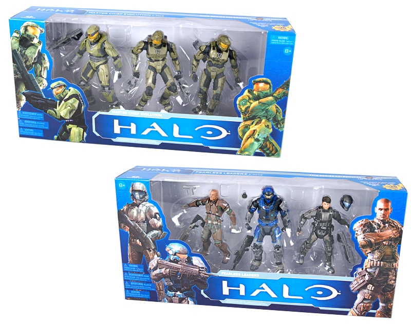 Joining the five-figure assortment is a pair of boxed three-packs. A Master Chief Evolution set showcases the star of the Halo trilogy, while the Fearless Leaders collection highlights the field commanders of Halo Wars, Halo 3: ODST, and Halo: Reach.