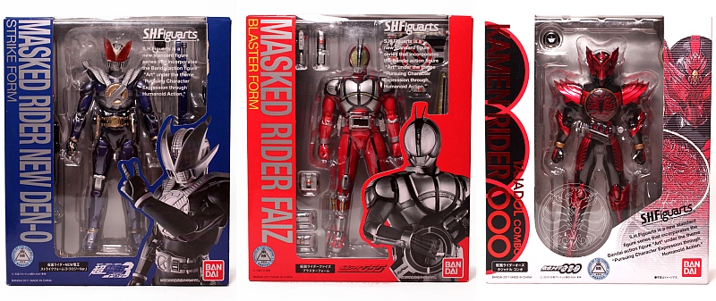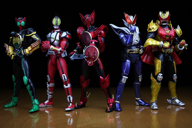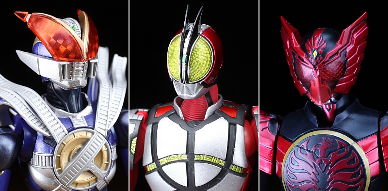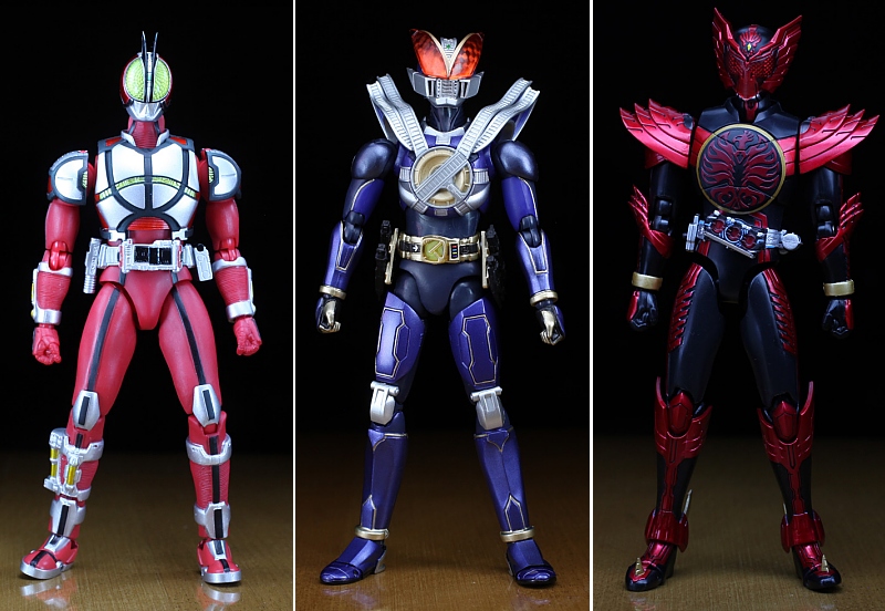 Faiz Blaster Form, Den-O Strike Form, and OOO Tajadol Combo...