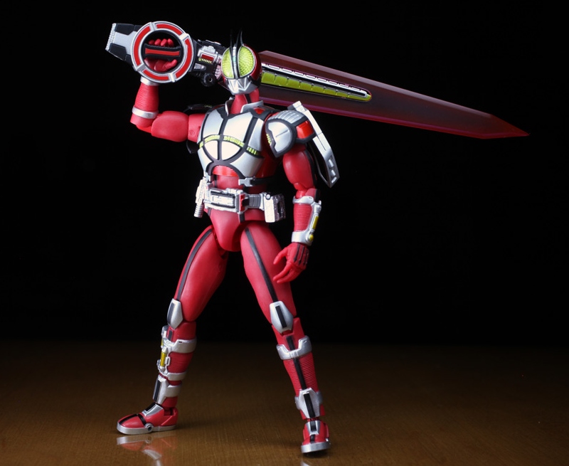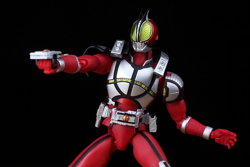 We have three different Kamen or Masked Riders to look at today and none of them are in the same series. Masked Rider Faiz Blaster Form is actually from KAMEN RIDER 555, the 13th installment in the series that aired 2003.