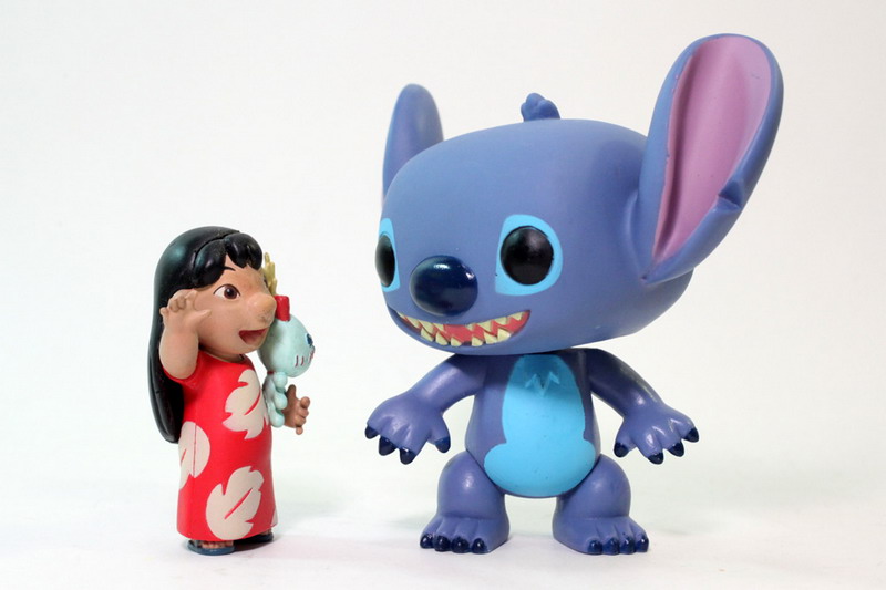 We’re taking a closer look at Stitch, made popular by the 2002 film Lilo and Stitch. He has sturdy and immovable arms and legs to support his incredibly big noggin, which does have neck articulation to vary it up on your shelf.