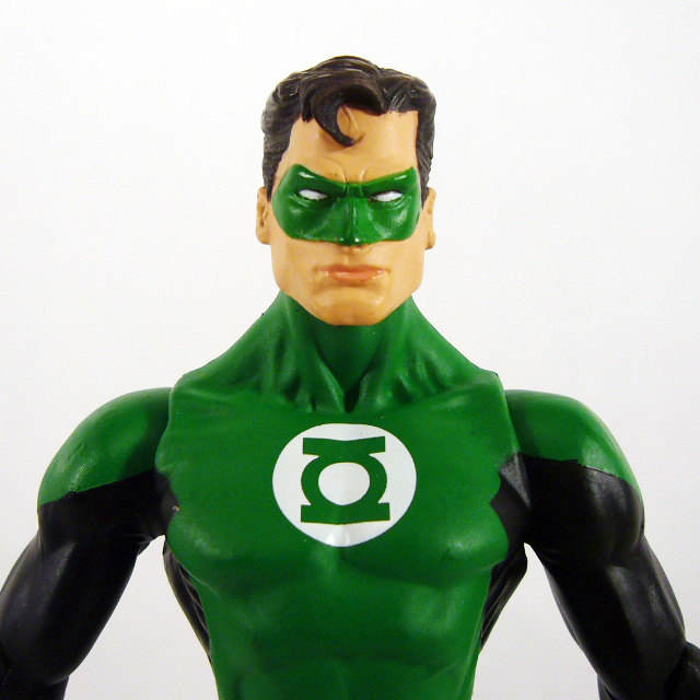 Colors are vivid and strong, dominated by a deep matte green and solid black. White of course shows up on the chest symbol and the Lantern’s gloves. Another hallmark of DC Direct’s figures is articulation that takes a backseat to the sculpt, and that’s true here. Hal looks great, but he is not super poseable. With joints at the neck, shoulders, elbows, T-crotch, and knees, you’re limited to a few iconic poses.