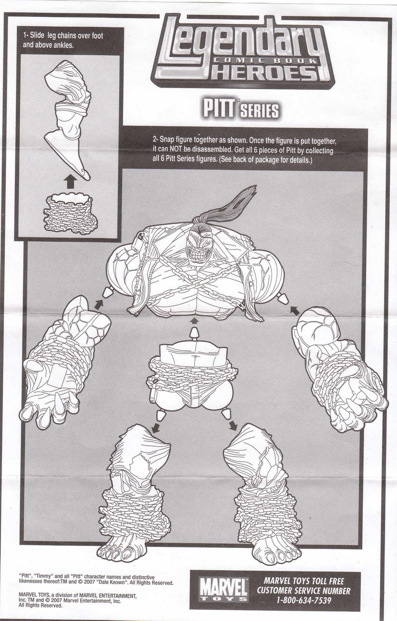 Marvel Toys did carry on to deliver two incredible action figure waves focused on indy superheroes. Called Legendary Comic Book Heroes, the line introduced fans to cool independant comic characters such as Ripclaw, Madman and Superpatriot. What was especially appealing about the line was Marvel Toys' inclusion of the Build-A-Figure. The concept, established with their popular Marvel Legends line as ToyBiz, allowed collectors to create a large scale bonus figure when all the figures in a series were purchased. In the case of Legendary Comic Book Heroes Series 1, the BAF was the massive PITT. Fully articulated, down to each clawed finger, PITT went a long way in making the first assortment a hit with serious figure fans. Unfortunately, the obscure characters in the line didn't go over too well with the general toy buying population and mass retail sadly brought Legendary Comic Book Heroes to an end.