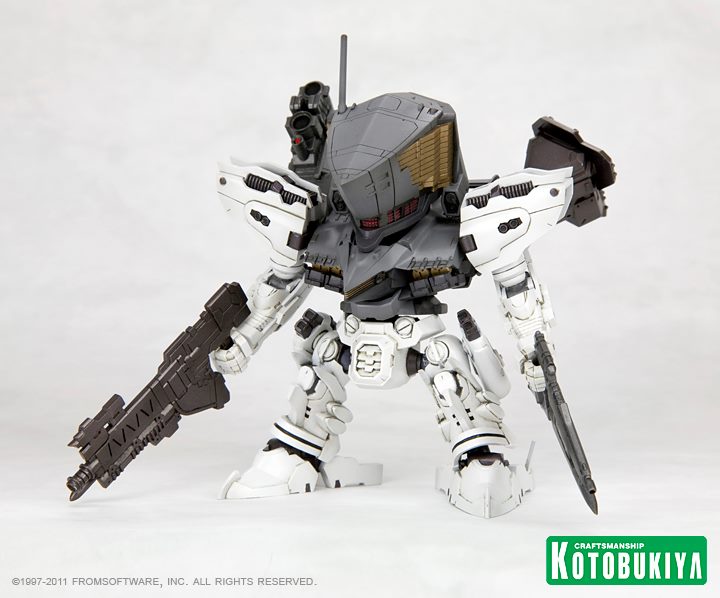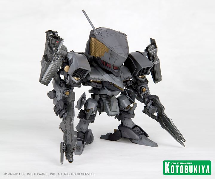 Kotobukiya continues their "D-Style" series of plastic model kit mecha with the second robot from Armored Core: the Aaliyah Supplice. The mini mecha comes in pre-painted gunmetal gray "night battle mode version" and recreates the original robot's unique silhouette.