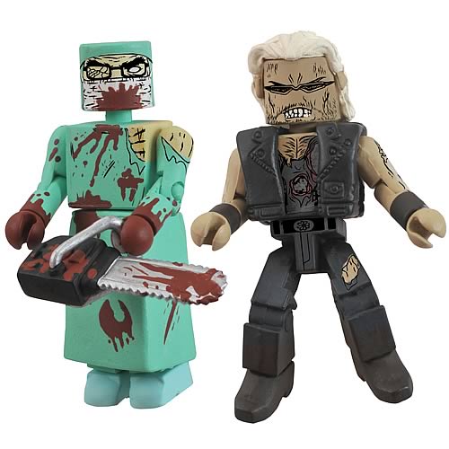 Word is out that a new Minimates line called Maximum Zombies will soon be shambling to stores. While complete details are still forthcoming, online retailer Entertainment Earth has listed pre-orders for a New York Comic Con exclusive Maximum Zombies 2-pack. Pictured above, the show exclusive will pair a Biker Zombie with a Surgeon Zombie and include two interchangeable heads and a chainsaw. The set will be limited to 3000 but promises to be the first of many more to come.