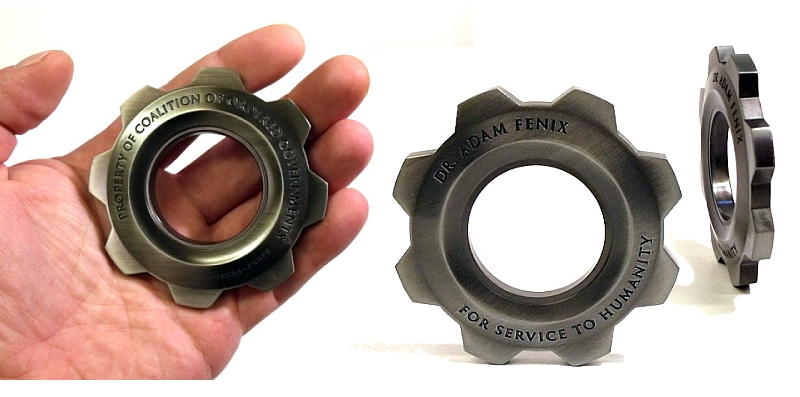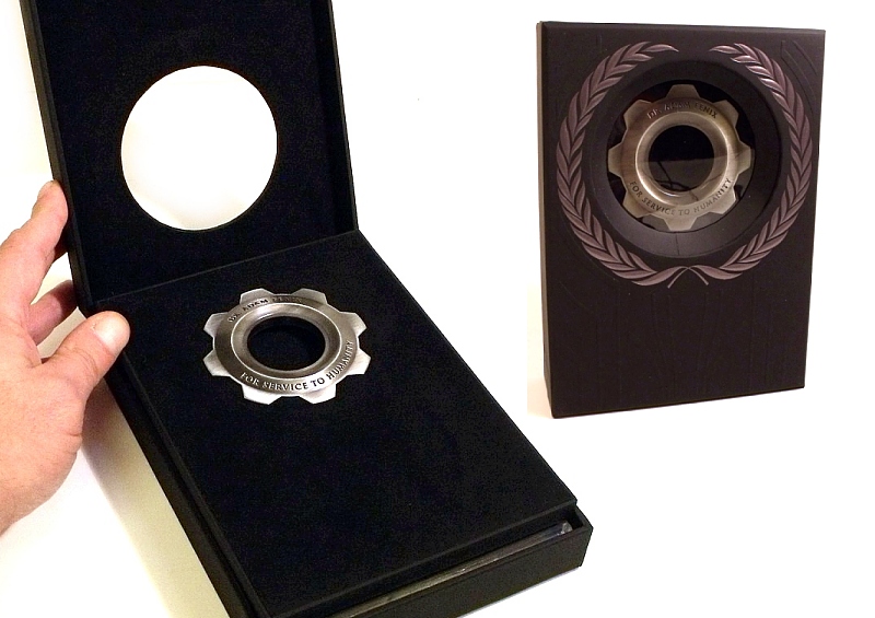 The Octus Award Service Medal is a solid metal replica that has some nice heft to it. It measures 3 inches in diameter and is wide enough to stand on its own. The medal and box alone are well worth the extra $20.