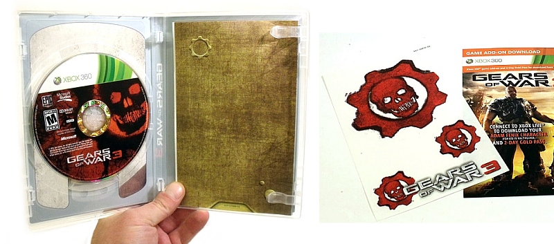 Finally, there's the game! They even packed in some stickers. Also included is the game's instructions and bonus code for an unlockable Adam Fenix Multiplayer Character.