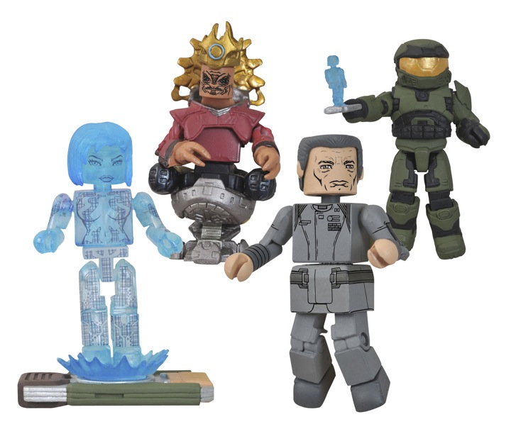 To celebrate the 10th anniversary of Halo, Diamond Select Toys has announced a commemorative set of Halo Minimates. The Series 4 box set will include two-inch block figures of Cortana (with data crystal chip base), Master Chief (with his own tiny Cortana and data crystal chip), Jacob Keys and the Prophet of Truth. This set will be available at specialty stores, online retailers and comic shops this winter.