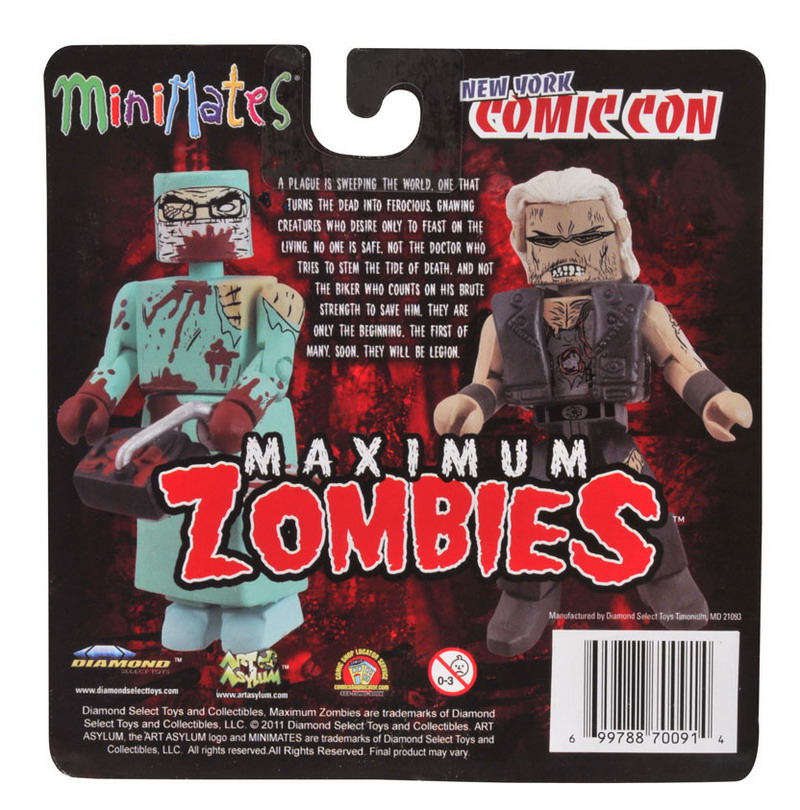 DST provides a packaged look at another one of their upcoming New York Comic-Con exclusives: Maximum Zombies Minimates 2-Pack. Featuring a zombie surgeon with a zombie biker, this set will be available for purchase at the show priced at $9. Diamond Select will have some on hand at booth #338, but visit Diamond Comics Distributors at booth #344 for a full list of participating retailers at the con.