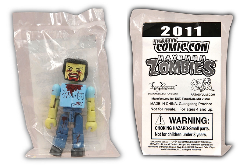 The free Minimate will be from their upcoming Maximum Zombies Minimates line, and will be a Zombie Civilian in a sealed bag. Giveaways will happen at the DST booth (#338) starting at 10:00 AM on Friday, Saturday and Sunday, WHILE SUPPLIES LAST - there will only be a limited number given out each day. (Note: Giveaways will NOT occur at noon, as they have in the past.)