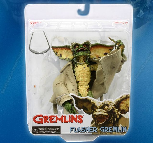 Slated for release this month, Gremlins Series 1 stars three brand-new renditions of classic Gremlins - the George Gremlin (with trademark scowl and cigar), the Flasher Gremlin (with flexible trenchcoat, cigarette and removable sunglasses) and the Daffy Gremlin (with noisemaker and gag glasses).