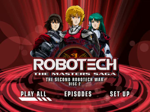 Robotech The Complete Series comes to you in a collector-friendly box that holds its four components DVD cases. The front cover of the box is decorated with the product’s logo below a group image of Rick Hunter, Dana Sterling, and Scott Bernard (the main characters of each Saga) with a glossy metallic effect that looks great. The back of the box has a matching image across the top along with a description of the show and a breakdown of the set’s bonus materials. Each Saga or Robotech War comes in its own DVD case with unique artwork of three characters: Rick, Roy, and Miriya for the First, Dana, Nova, and Marie from the Second, and Scott, Rook, and Lancer from the Third. The overall design is the same on each with a swirling background pattern that’s a different color on each set. The back of each DVD case has a fourth character at the top (Minmei, Zor Prime, and Rand respectively) above the same general Robotech description and a specific blurb about each Saga. Each of the 13 episodic discs has its contents printed on it, and you’ll find that they have a streamlined animated menu that gets you to the content quickly.
