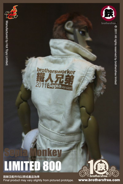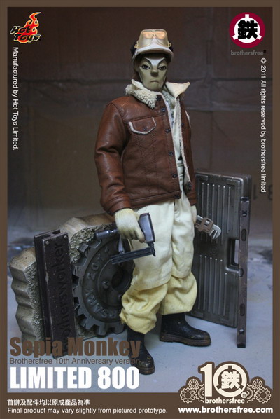To celebrate the 10th anniversary of the Brothersfree, Hot Toys presents two new 1:6th scale action figures: Monkey and a special limited edition 800 piece run of Sepia Monkey. This collaboration project of Brothersfree and Hot Toys will see release first quarter 2012.