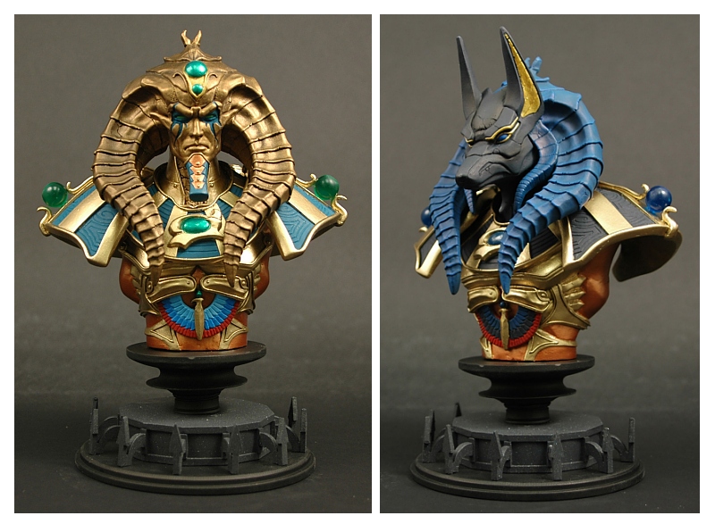 These busts will be individually produced to order right in the Four Horsemen’s studios and each one will be signed by the whole team at Four Horsemen Studios. Each bust will be individually hand-cast by the Four Horsemen’s molding and casting duo – Shane “Diamond” Dittsworth and Owen “Odawg” Oertling - and hand painted to order by the Four Horsemen’s amazing princess of the paints – Sherri Lynn Cook. Collectors be able to choose from any or all of the Scarabus variants – Scarabus (sample image shown – not final), Dormant Form Scarabus, Demon Fire Scarabus, Anubos (sample image shown – not final), Thothos, Horos, Melchom, Nergall, Haures and/or Azazel.