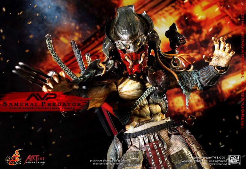 Hot Toys presents the 1:6th scale Samurai Predator the first figure in their new Artist Collection, a collaboration project with great collectible figure artists. The collectible is specially designed and painted by Mr. Takayuki Takeya and sculpted by Mr. Yuji Oniki from Japan featuring the Samurai Predator in warrior look, newly sculpted head and body with articulations, detailed accessories, weaponry and diorama base of Alien’s corpse.
