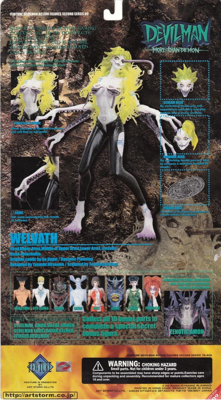 In the early 2000s, Japanese toy company Fewture had a pretty solid run with several series of Devilman action figures. Based on Go Nagai's popular anime/ manga creations (and later live-action films), this line saw some really twisted characters released, including today's Card Back, Welvath. Part of the "More Than Demon" assortment, Welvath included multiple heads and arms that opened up to reveal gaping jaws. I picked this figure up rather cheap on the secondary market, but some of the rarer variants (and there were many) can fetch a pretty penny.